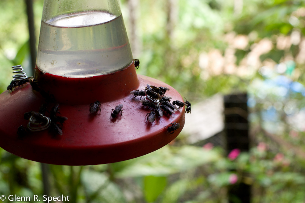 The next day I saw hundreds of bees feeding on the sweet water. The feeder no longer